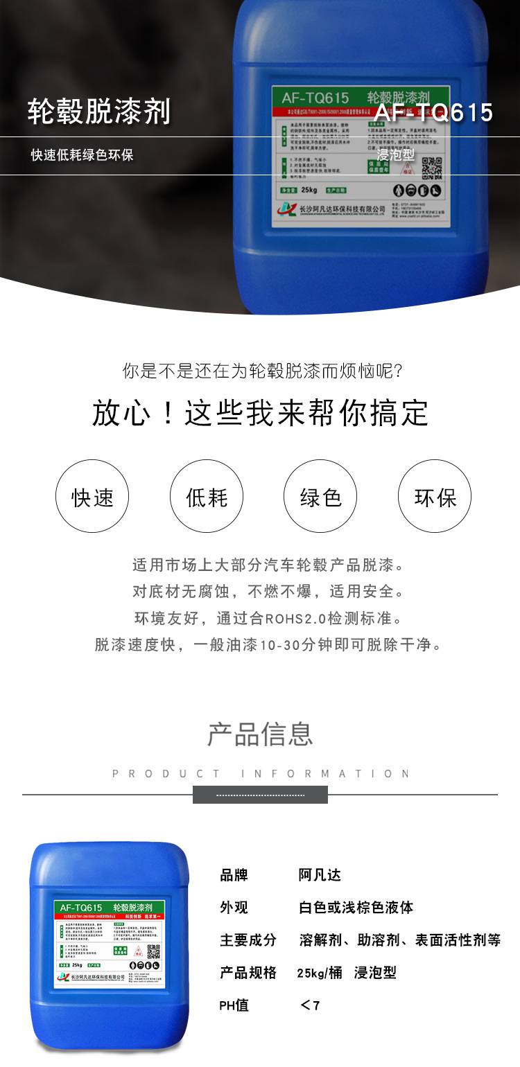 適用範圍:本品適合汽車輪轂、鋁合金材質零件的脫漆處理。