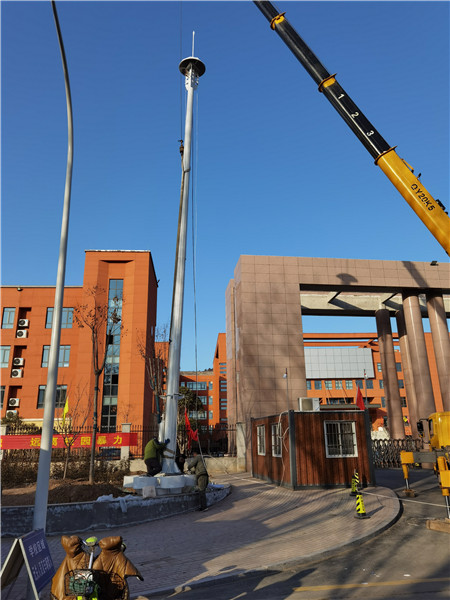 高杆燈一般是指15米以上鋼製錐形燈杆和大功率組合式燈架構成的新型照明裝置。它由燈頭、內部燈具電氣、杆體及基礎部分組成。校區高杆燈批發燈頭造型可根據用戶要求、周圍環境、照明需要具體而定;內部燈具多由泛光燈和投光燈組成,光源采用NG400高壓鈉燈,照明半徑達60米。杆體一般為棱錐形獨體結構,用鋼板卷製而成,高度為15—40米,多為兩到三節構成。